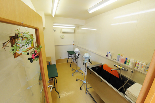 ワンちゃんのカットやシャンプーはこの部屋で行います。待合室から見えるような造りになっています。