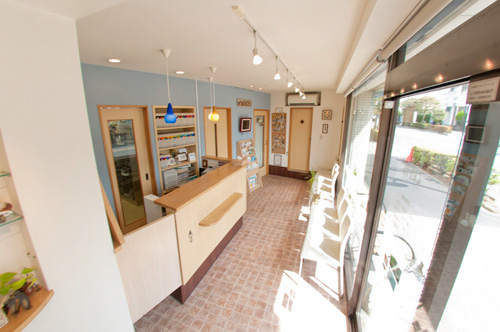 明るく開放的な待合室です。来院したら正面の受付にお声かけください。分からない事はなんでもお気軽にご相談ください。