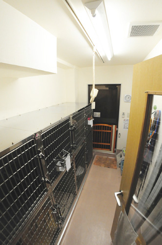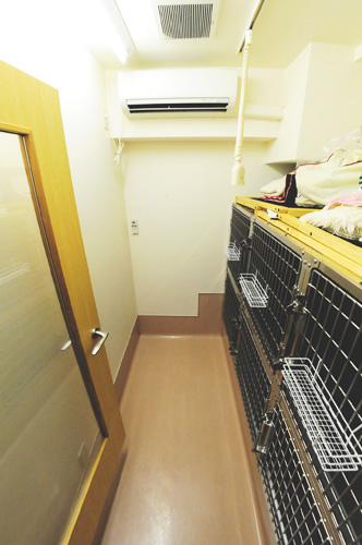 病院の奥に配置されたワンちゃん用の施設です。一般の入院やペットホテルでのお預かりの際に使用しています。